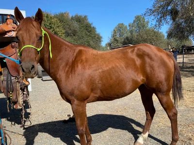 Dix is a Standard bred, off the track racehorse believed to be appx 15-16 years of age. He was abandoned at Denio's in Roseville, CA, the day a local horse auction was taking place. It was reported someone backed a trailer up, unloaded him then drove off. After the auction all the other horses were picked up, except Dixon. He was standing alone, extremely underweight, with stickers (Auction stickers, probably to hide the fact he wasn't supposed to be there) in his mane and forelock with noticeable recent, "Pin firing" wounds on his legs.