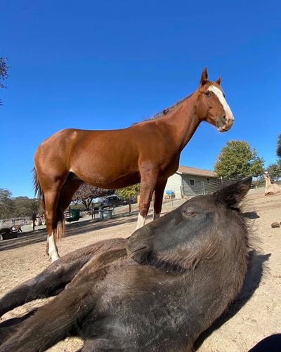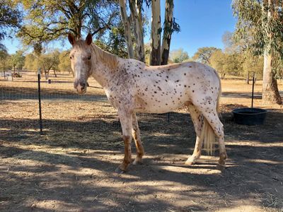 HI! I'm Trix, a 16 hand gelding about 6 years old. I was rescued by Oakdale Equine Rescue, adopted, then returned a year later. About a year later, my forever Mom (Jackie) rescued me again and says I will spend the rest of my life filled with love and attention. That is a very good thing for me, because I LOVE & DEMAND lots of it! Treats and humans of every kind are my favorite. Mom says I'm a social butterfly and love being up in any business that isn't mine!