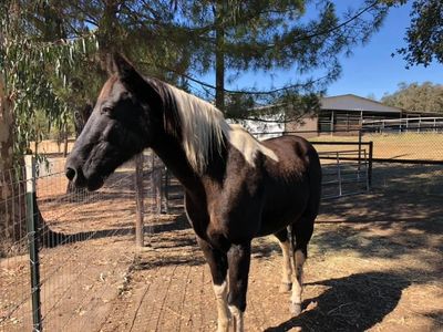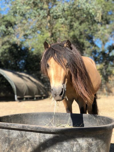 Pickles is a character and a half. He is a little stand offish to new people, but if you have a cookie, he will be your bestest friend! He is a bit on the wild side. It's likely he was sold at auction due to his, "Bucking bronco" behavior. We're unsure if Pickles will ever be suitable for riding, but we make a little progress everyday. Either way he has a forever home here at FLM.